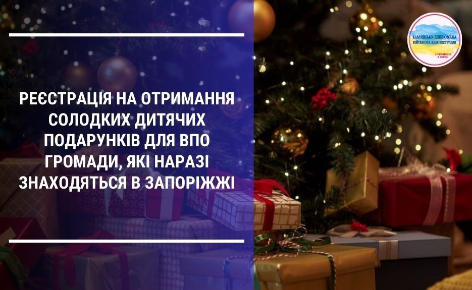 Шановні ВПО Кам’янсько-Дніпровської міської територіальної громади! Напередодні Різдвяних свят ми готуємо для дітей, які були змушені покинути рідний дім і виїхати з тимчасової окупації, солодкий подаруночок. Його зможе отримати кожна неповнолітня дитина (від 0 до 17 років включно) з Кам’янки-Дніпровської, Великої Знам’янки та Новоолексіївки, яка наразі знаходиться в Запоріжжі.…