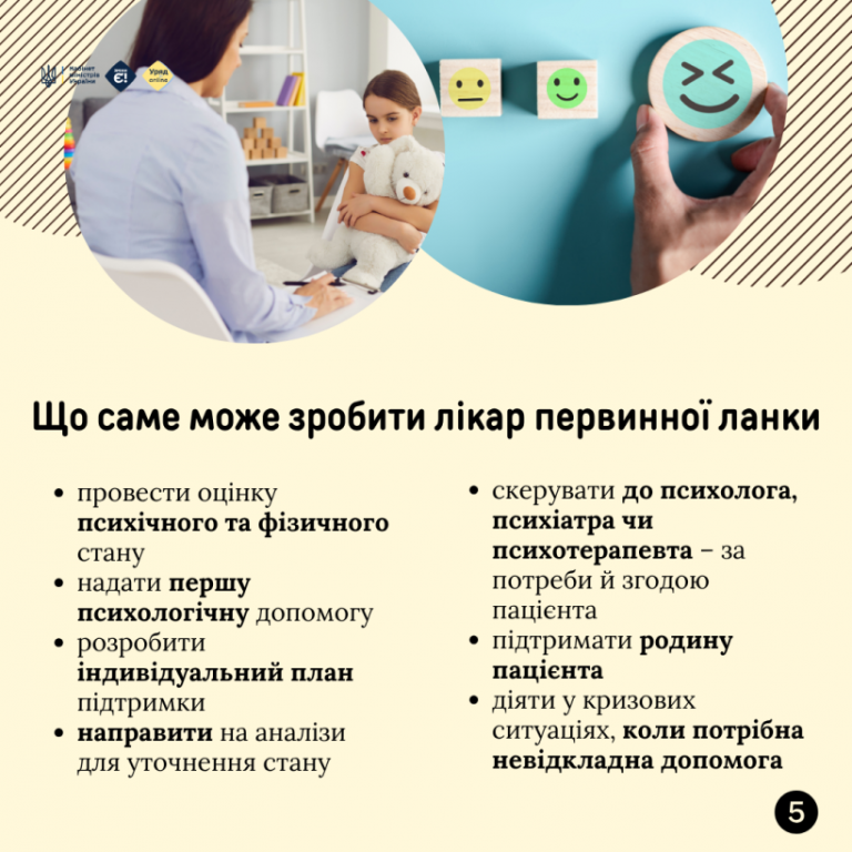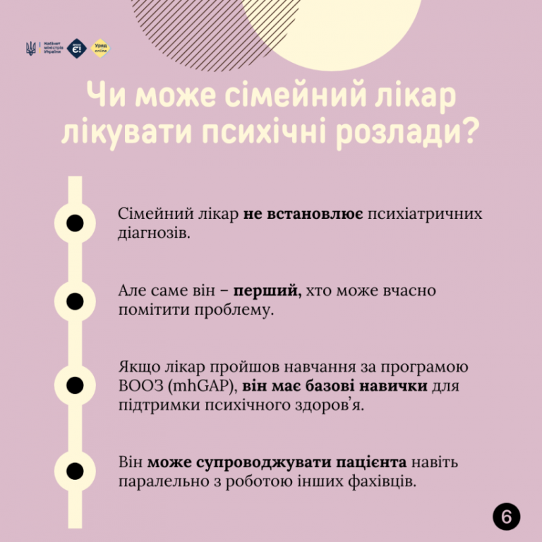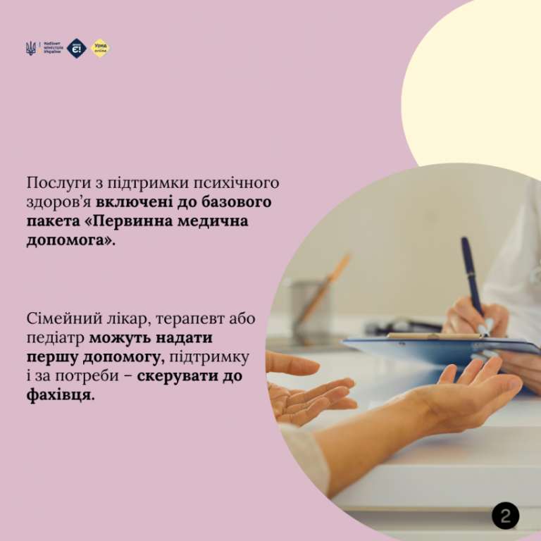 Сімейні лікарі в Україні можуть надати першу допомогу у сфері психічного здоров’я. Це частина безоплатного пакета первинної медичної допомоги. За потреби лікар скерує до фахівця - психолога чи психіатра.