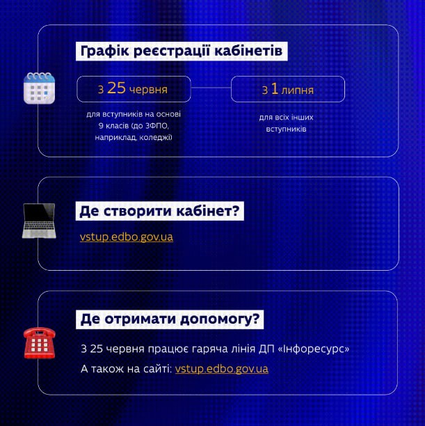 З 25 червня починає працювати гаряча лінія ДП «Інфоресурс», де можна отримати допомогу з реєстрацією кабінету та консультації щодо інших питань онлайн-вступу.