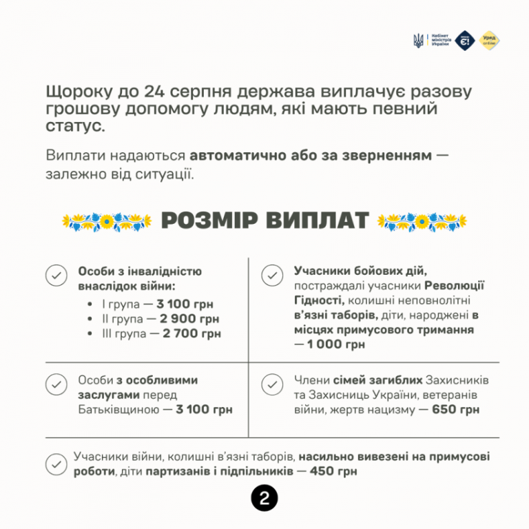 ХТО МОЖЕ ОТРИМАТИ РАЗОВУ ВИПЛАТУ ДО ДНЯ НЕЗАЛЕЖНОСТІ У 2025 РОЦІ?