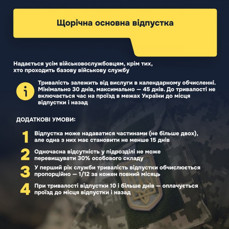 ВІДПУСТКА ДЛЯ ВІЙСЬКОВОСЛУЖБОВЦІВ: ВИДИ ТА УМОВИ НАДАННЯ – РОЗ’ЯСНЮЄ МІН’ЮСТ