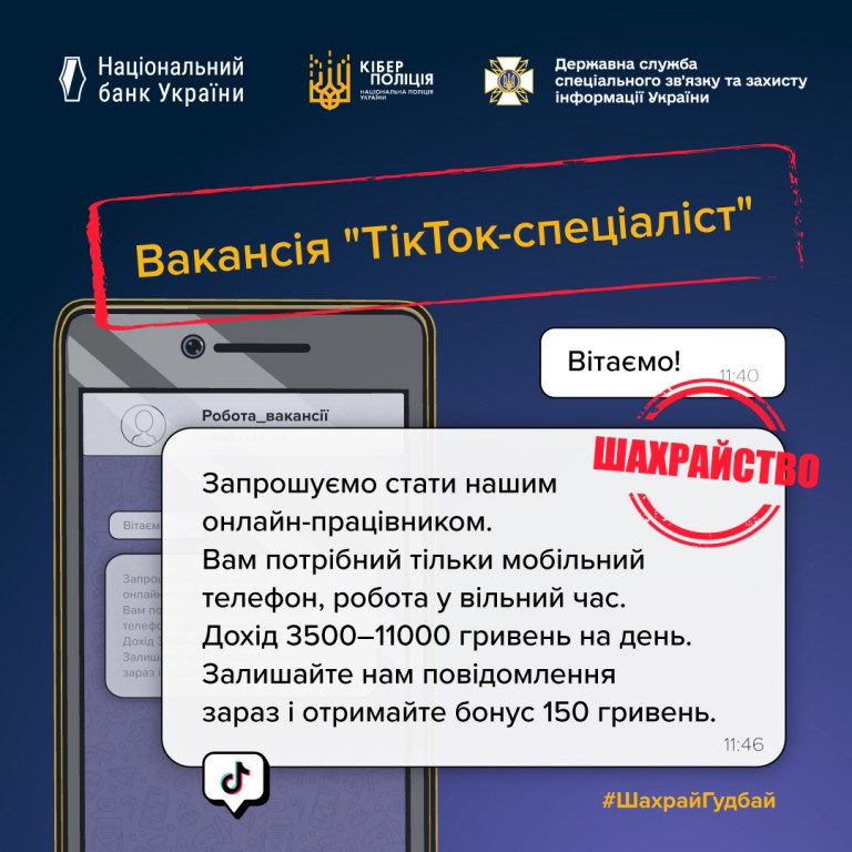 - "ТікТок-спеціаліст" – шалені доходи за "перегляди відео".