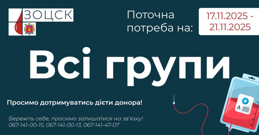 ЗАПОРІЗЬКИЙ ОБЛАСНИЙ ЦЕНТР СЛУЖБИ КРОВІ ЗАПРОШУЄ ДОНОРІВ КРОВІ