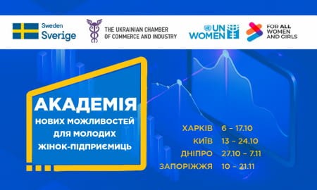 ООН Жінки в Україні у співпраці з Торгово-промисловою палатою України за фінансової підтримки уряду Швеції запускають масштабний освітньо-менторський проєкт «Академія нових можливостей для молодих підприємниць».