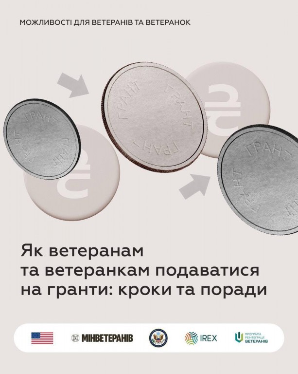 Інфокампанія «Можливості для ветеранів та ветеранок» реалізовується в межах партнерства Мінветеранів та Програма реінтеграції ветеранів IREX, яку втілює IREX in Ukraine за підтримки Державного департаменту США. Зміст є виключною відповідальністю IREX та Мінветеранів і не обов’язково відображає погляди Державного департаменту США.