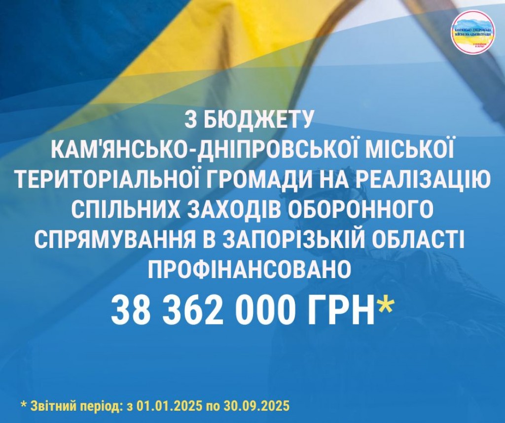 Також у 2025 році з бюджету нашої Кам'янсько-Дніпровської міської територіальної громади на реалізацію спільних заходів оборонного спрямування в Запорізькій області профінансовано 38 362 000 грн.