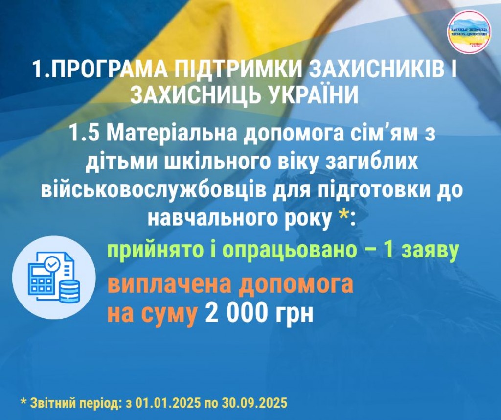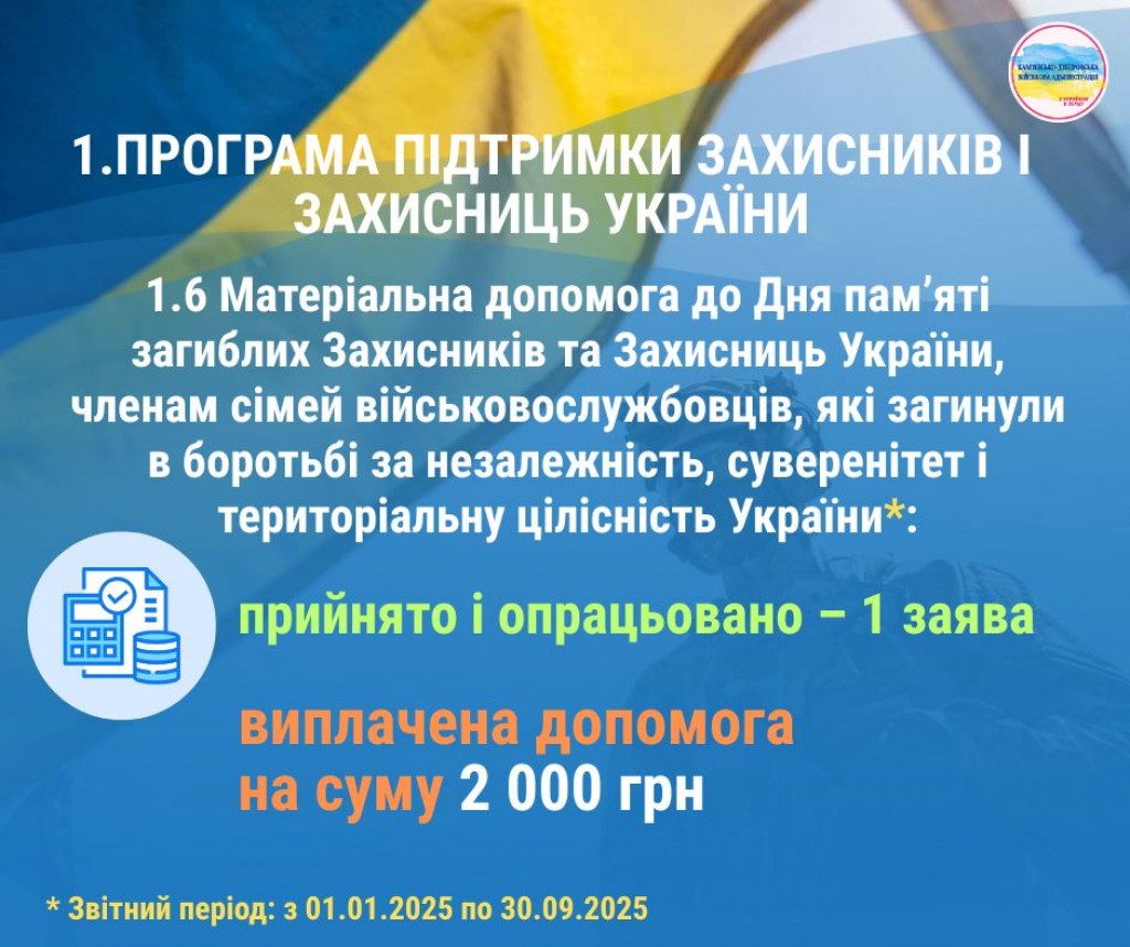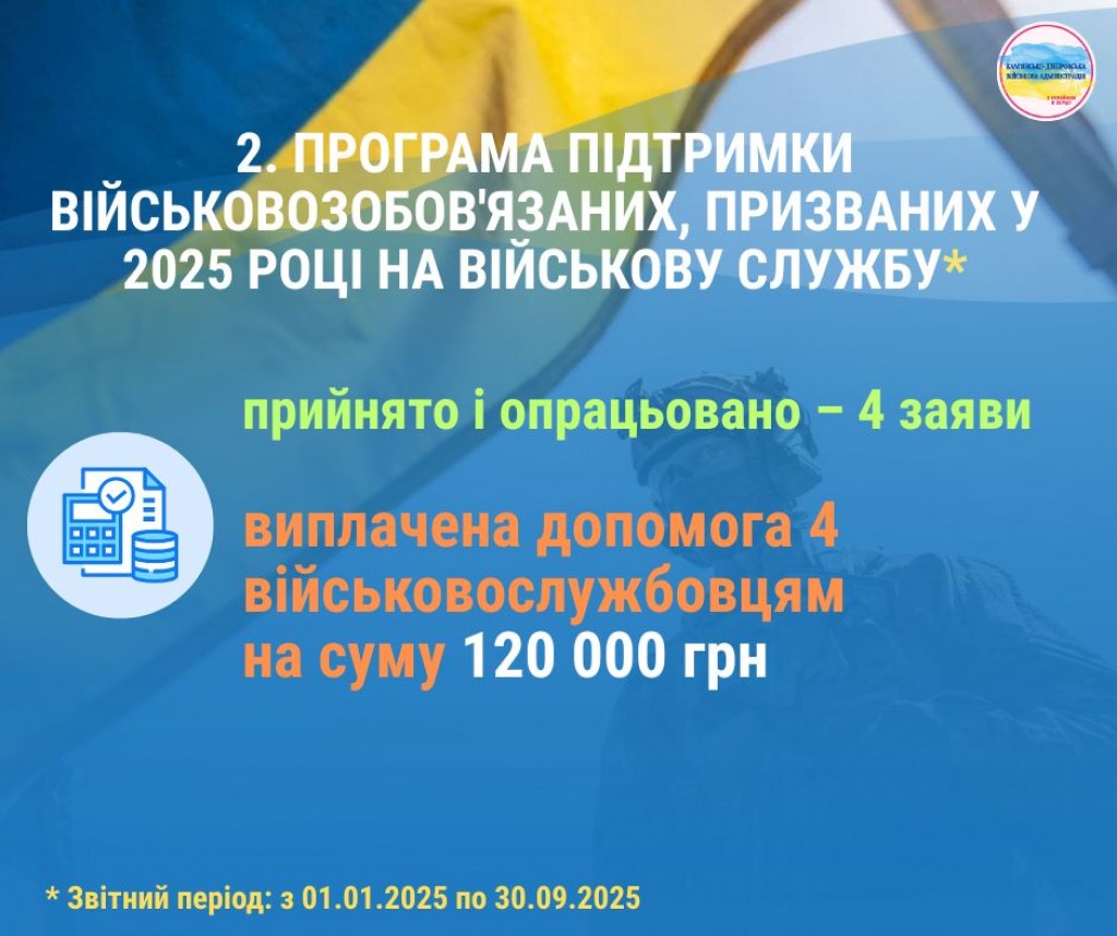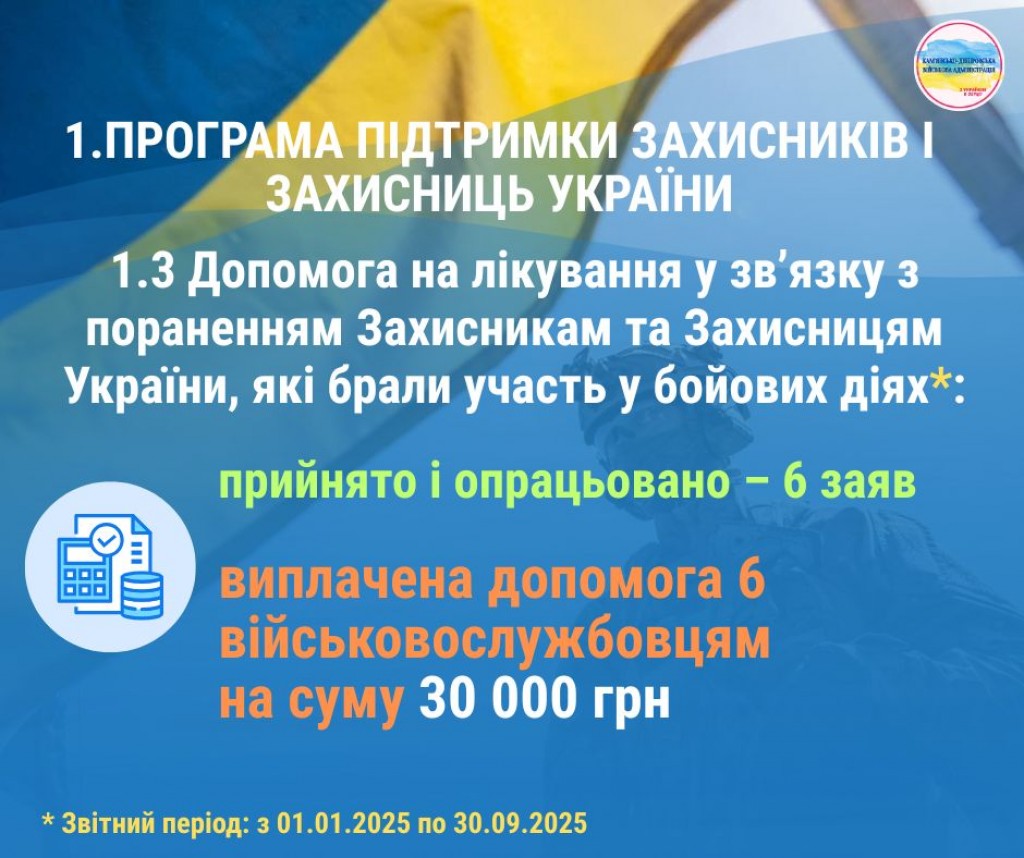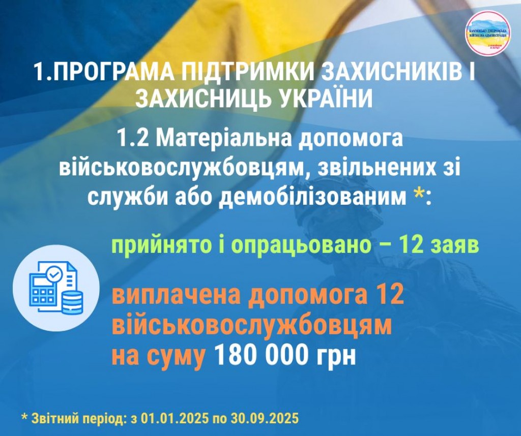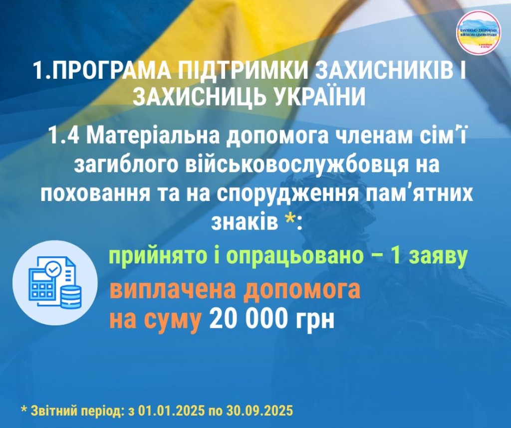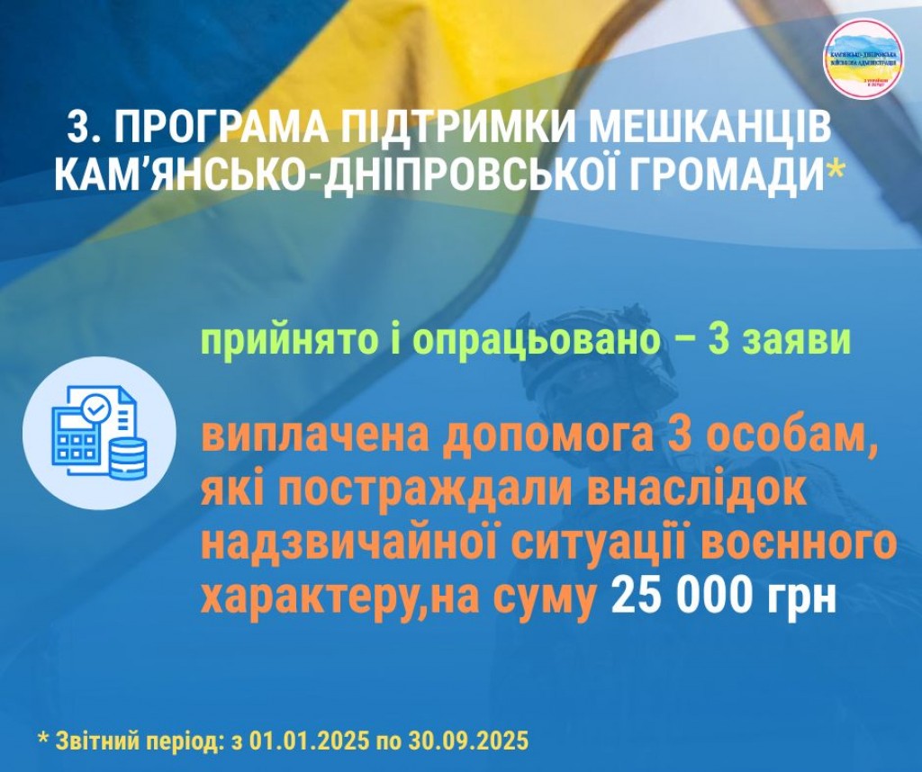 Друзі! Пропонуємо ознайомитися з інфографікою, яка відображає результати реалізації програм громади для підтримки військовослужбовців, ветеранів, членів родин загиблих та постраждалих мешканців Кам’янсько-Дніпровської громади за результатами дев’яти місяців 2025 року.