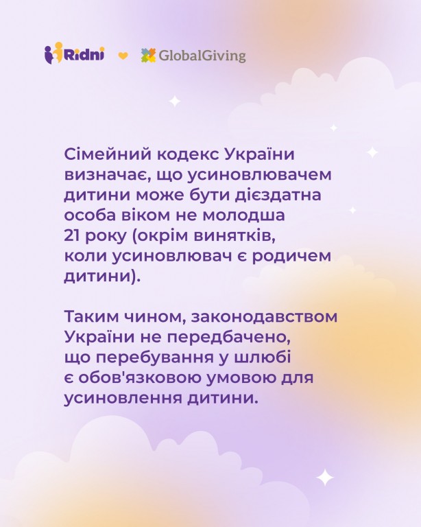 З інфографіки ви дізнаєтеся, чи обов'язково перебувати у шлюбі для спільного усиновлення. Гортайте карусель та дізнавайтесь більше