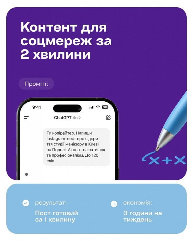 - Навчишся створювати тексти, візуали та аудіо - за лічені хвилини.