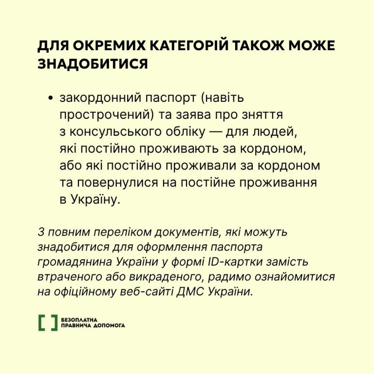 З повним переліком документів, які можуть знадобитися для оформлення паспорта громадянина України у формі ID-картки замість втраченого або викраденого, радимо ознайомитися на офіційному веб-сайті ДМС України.