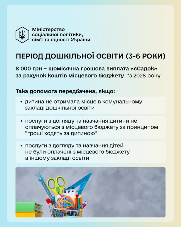 - Одноразова допомога «Пакунок школяра» - 5 000 грн для учнів перших класів.