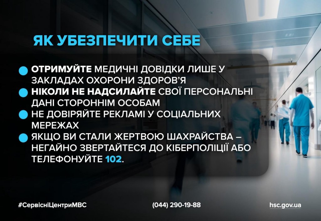Головний сервісний центр МВС спільно з Департаментом кіберполіції Національної поліції України застерігають громадян: на просторах Інтернету знову активізувалися шахраї, які пропонують «купити» медичну довідку щодо придатності до керування транспортними засобами без проходження реального медичного огляду.