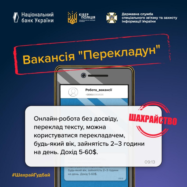 - "Перекладач без досвіду" - обіцяють гарну оплату за роботу через онлайн-перекладач.