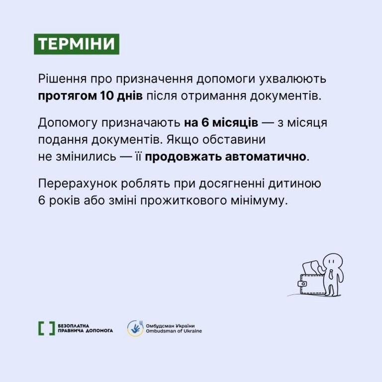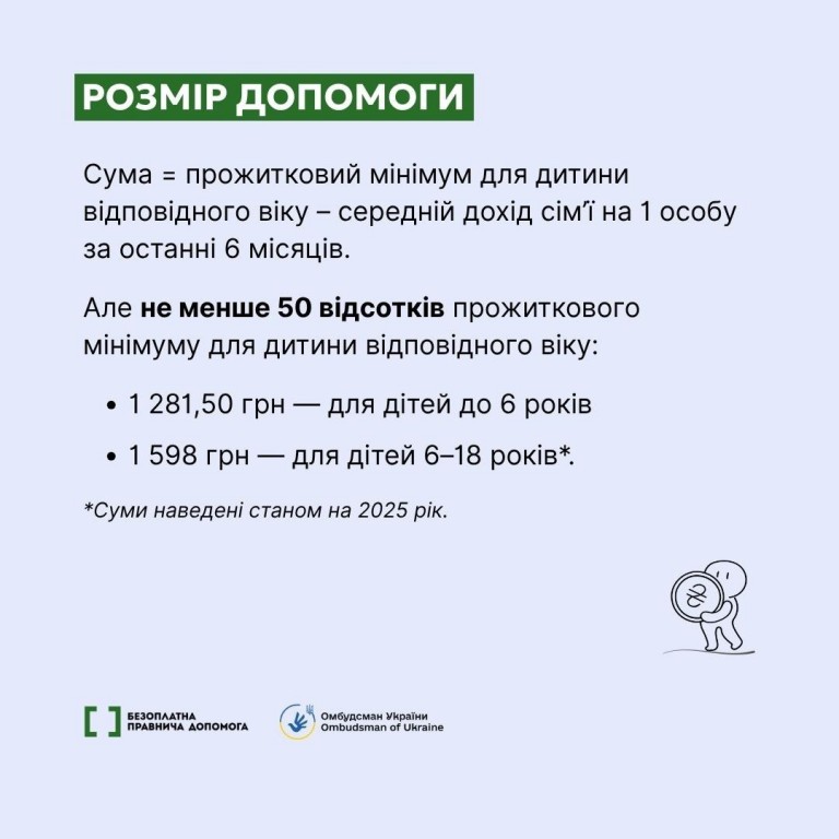 Допомогу виплачують до досягнення дитиною 18 років, а її розмір залежить від матеріального стану сім’ї, у якій виховується дитина.