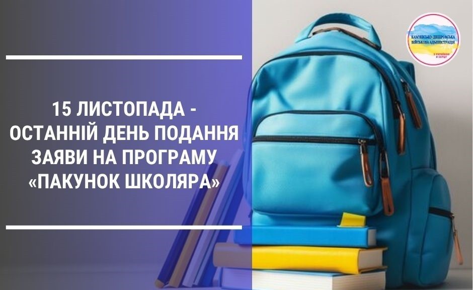 15 ЛИСТОПАДА - ОСТАННІЙ ДЕНЬ ПОДАННЯ ЗАЯВИ НА ПРОГРАМУ «ПАКУНОК ШКОЛЯРА»