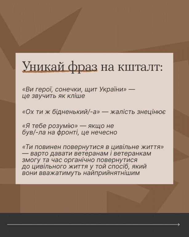Якщо переживаєш, що в розмові з ветераном чи ветеранкою можеш сказати щось не те - читай карусель від Всеукраїнської програми ментального здоров’я «Ти як?».