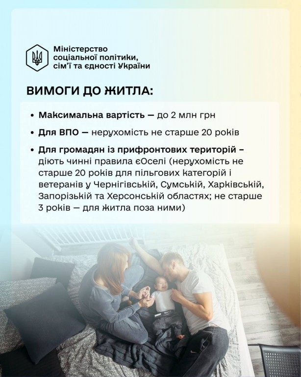 Умови участі у програмі прості – не мати іншого житла, крім того, що знаходиться в районі активних бойових дій чи на тимчасово окупованих територіях та працювати офіційно.