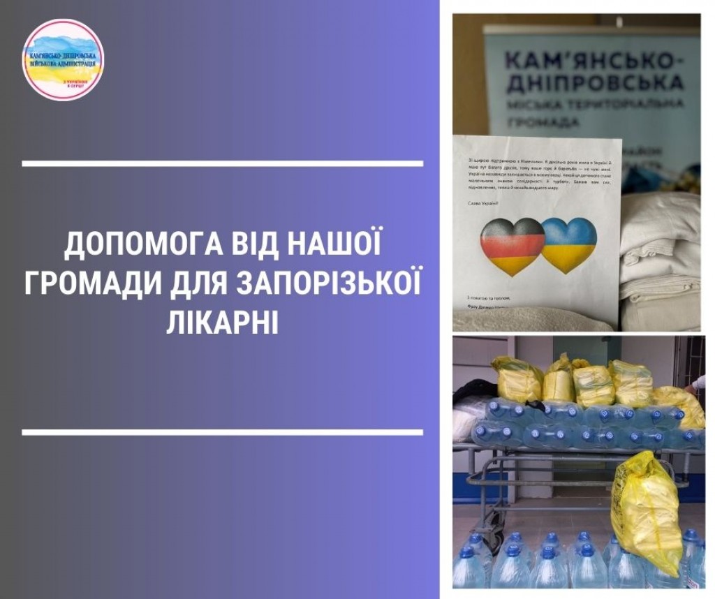 Вчора Кам’янсько-Дніпровська міська військова адміністрація передала допомогу для однієї з лікарень міста Запоріжжя, де проходять лікування поранені захисники України.