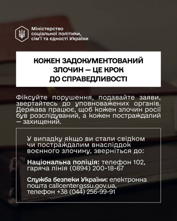 У День прав людини Мінсоцполітики нагадало про те, що ці злочини мають конкретні наслідки для цивільних, військовополонених, дітей і цілих громад. І кожен задокументований факт — це крок до справедливості та відповідальності.