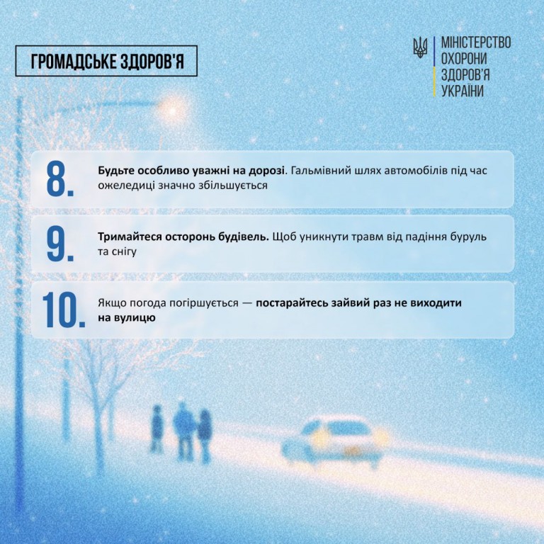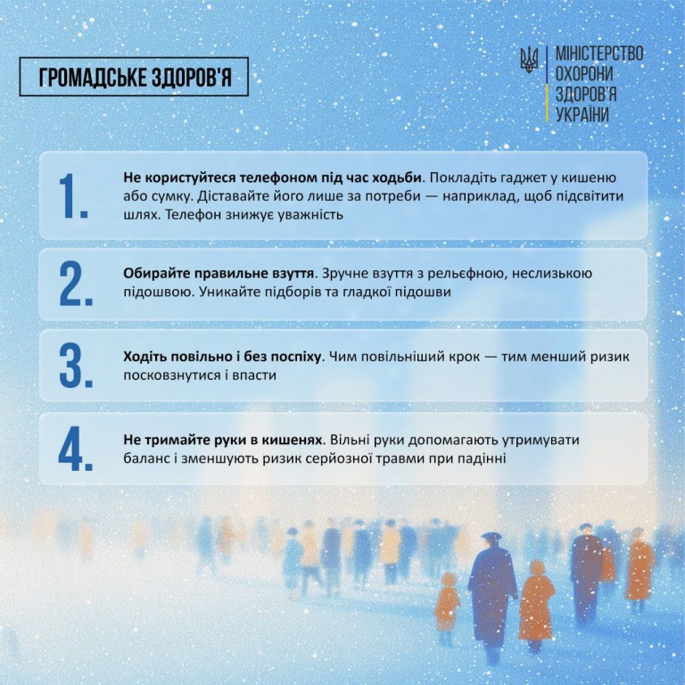 СЛИЗЬКО? ДІЙТЕ ОБЕРЕЖНО: 10 ПРАВИЛ БЕЗПЕКИ ВІД МОЗ УКРАЇНИ