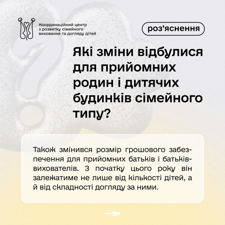 Із 1 січня 2026 року держава перейшла на нову систему розрахунку грошового забезпечення для прийомних батьків і батьків-вихователів. Грошове забезпечення у підвищеному розмірі виплачуватиметься сімʼї, незалежно від того, коли вона була утворена.