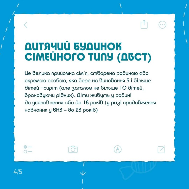Кожна з них має свою мету й особливості, але всі вони об’єднані спільним знаменником - дати дитині змогу зростати поруч із дбайливими дорослими у турботі та безпечному сімейному оточенні.