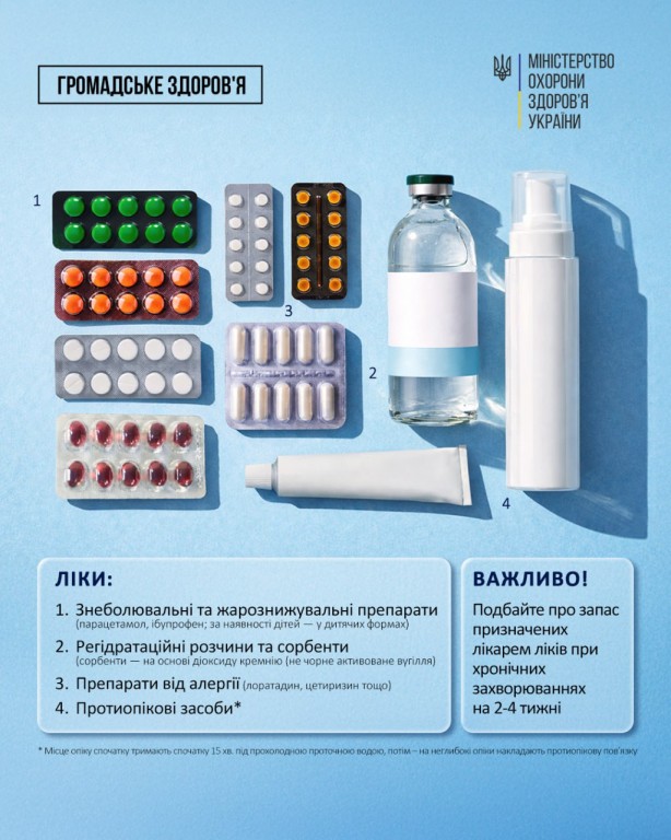 Як зазначає МОЗ України, нинішня зима - слушний час перевірити домашню аптечку, а надто - якщо ви маєте хронічні захворювання і стани. Це проста дія, яка допоможе вам почуватися впевненіше у час війни і спричинених російськими обстрілами відключень світла та тепла.