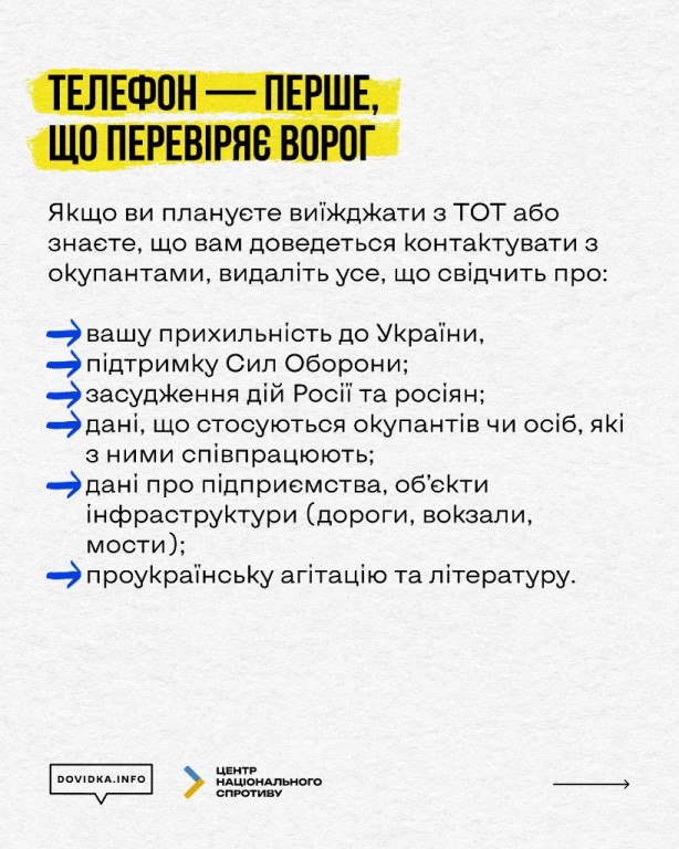 Телефон сьогодні може врятувати життя, але може поставити його під загрозу. Смартфони - перше, що перевіряють окупанти. Іноді їм достатньо одного лайка, фото чи кривого слова в чаті, щоб вас затримати.