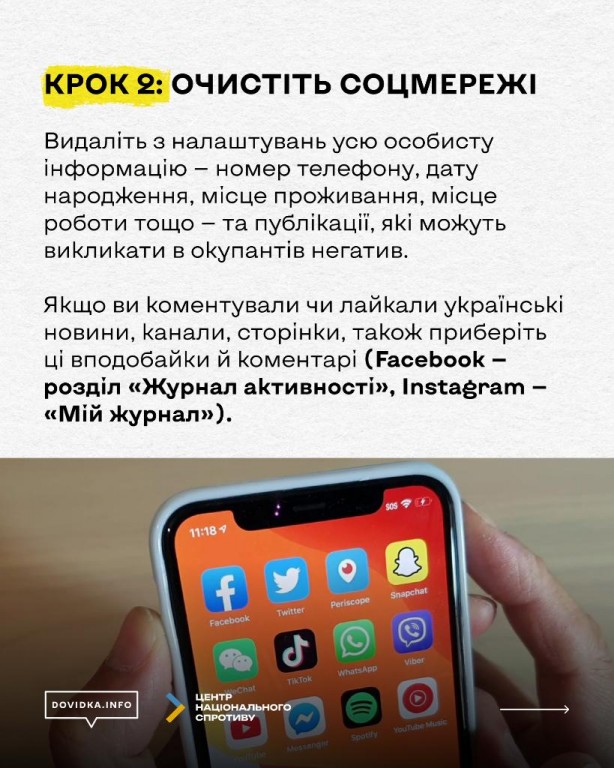 Центр Національного Спротиву разом із Довідка.Інфо зібрали покрокову інструкцію, що потрібно видалити з телефону, аби не наражати себе на небезпеку. Поділіться цим дописом із тими, кому це може врятувати свободу.
