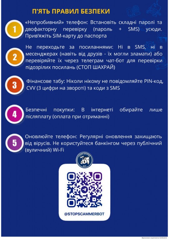 Що варто пам’ятати? Не повідомляйте конфіденційну інформацію стороннім, не довіряйте «терміновим» дзвінкам про нібито проблеми з карткою чи родичами, перевіряйте сайти перед оплатою та користуйтеся додатковими налаштуваннями безпеки на телефоні.