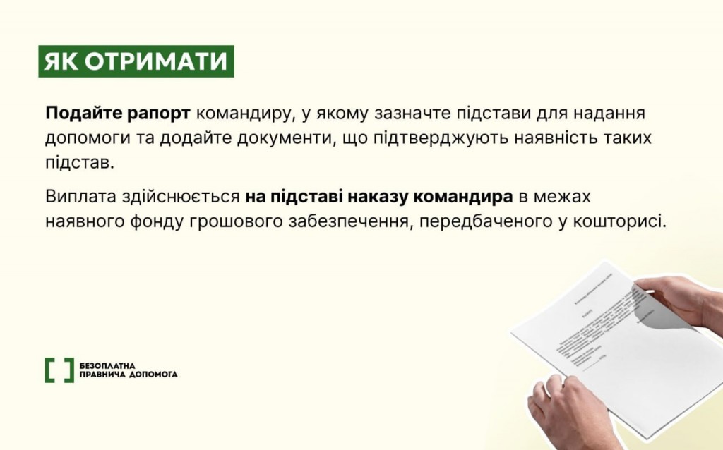 МАТЕРІАЛЬНА ДОПОМОГА ДЛЯ ВИРІШЕННЯ СОЦІАЛЬНО-ПОБУТОВИХ ПИТАНЬ ДЛЯ ВІЙСЬКОВОСЛУЖБОВЦІВ