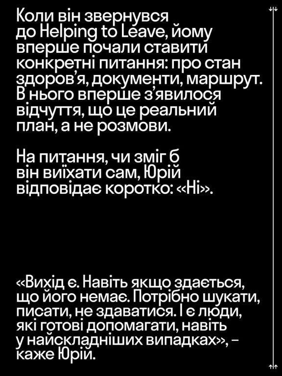 Читайте інтерв'ю на сайті Helping to Leave за посиланням: https://helpingtoleave.org/uk/voices/411.