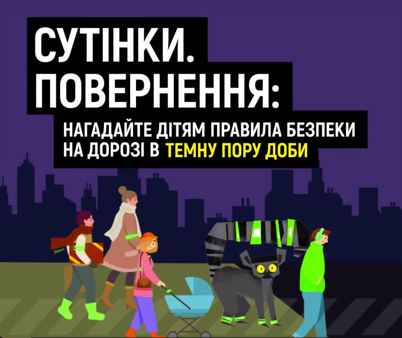 СУТІНКИ. ПОВЕРНЕННЯ: НАГАДАЙТЕ ДІТЯМ ПРАВИЛА БЕЗПЕКИ НА ДОРОЗІ В ТЕМНУ ПОРУ ДОБИ