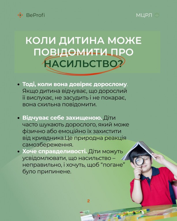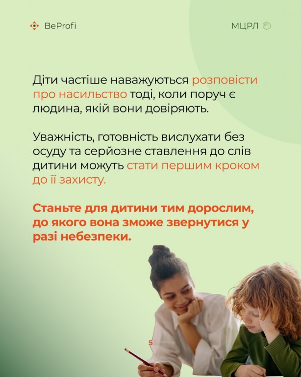 Не варто допитувати, тиснути або вимагати деталей - це може посилити травматизацію. Завдання дорослого - подбати про безпеку дитини та звернутися до відповідних служб. Дієвий спосіб зупинити насильство - помічати, реагувати та надавати пріоритет правам і інтересам постраждалих.