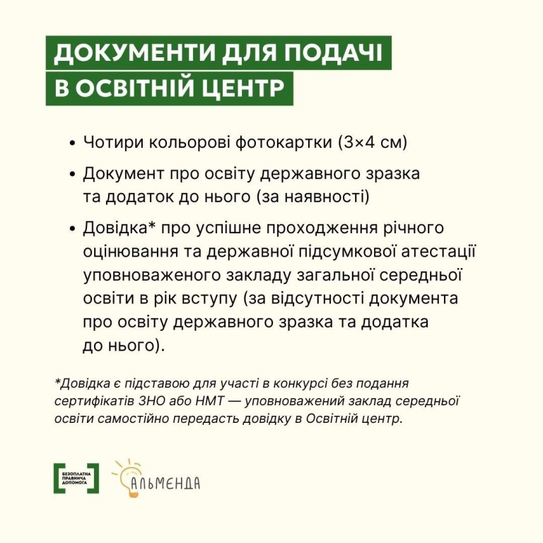 Детальніше про вступ до закладів вищої та фахової передвищої освіти, а також відповіді на поширені запитання - на сайті Центру громадянської просвіти «Альменда».