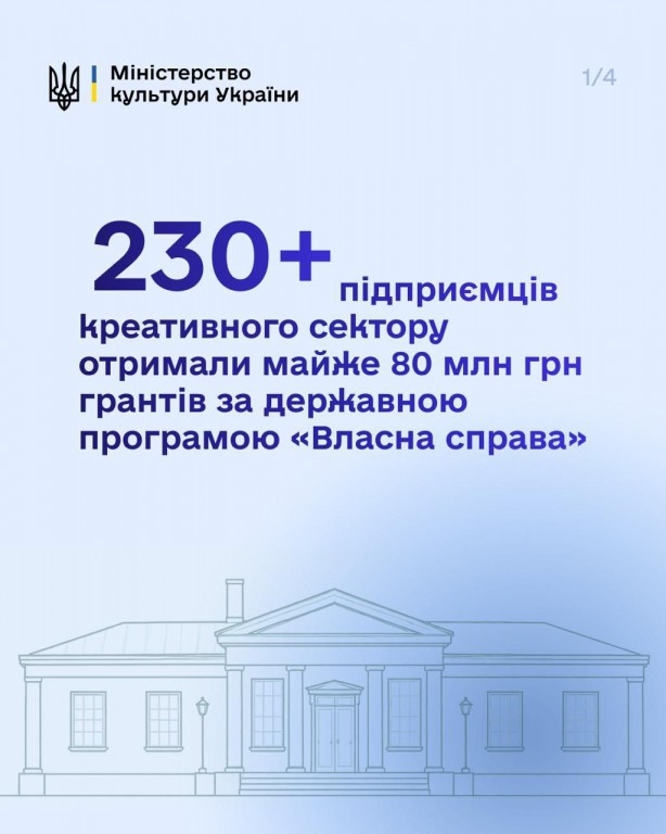 Понад 230 підприємців креативного сектора отримали майже 80 млн грн грантів. Про це повідомляє Міністерство культури України.